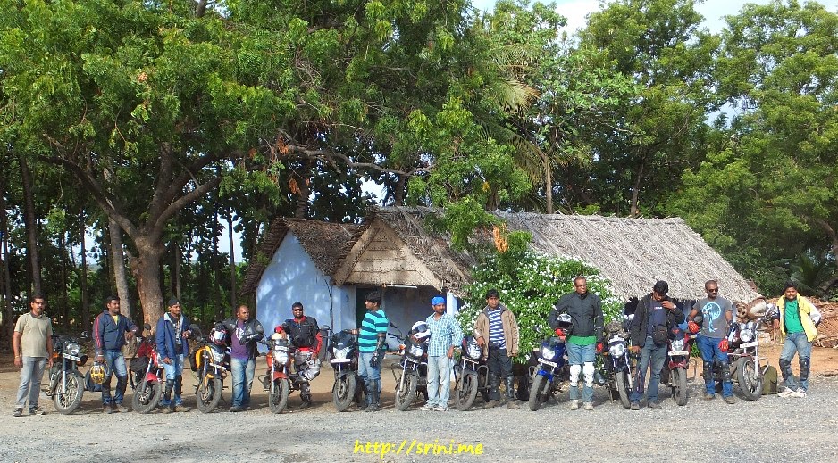 It was a blue metal quarry and the place of stay was a big thatched hutment which had plenty of space for all of us to sleep and for all our bikes to be parked. There was a water pump which was gushing out water in full throttle; we took a good bath; it did soothened off the body pain; after dinner of idlis and parottas we went in for sleep.